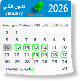 من الاثنين 12-1 إلى الثلاثاء 20-1-2026 الموافق 23رجب إلى 1شعبان-1447هـ حسب الجدول